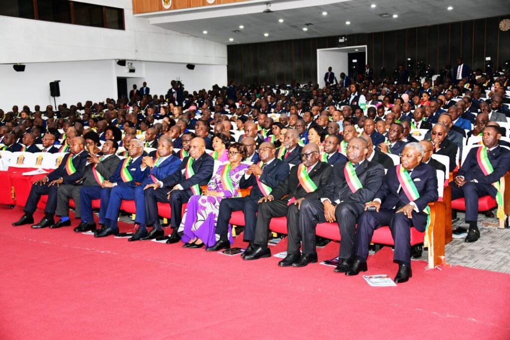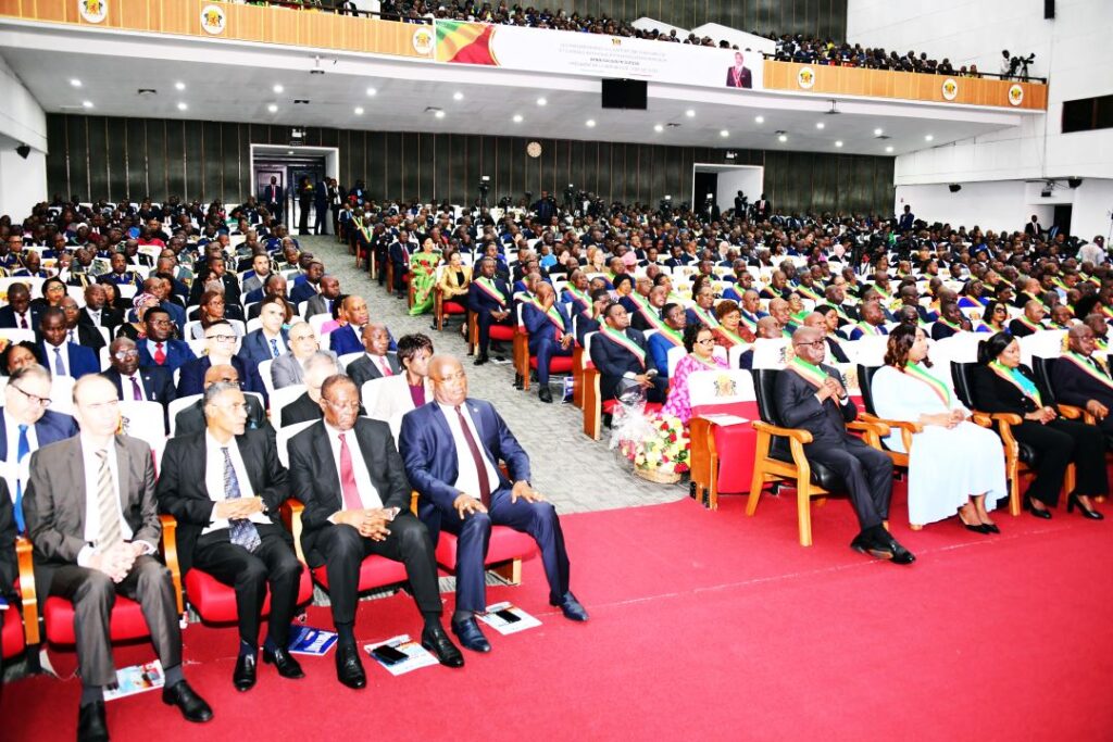 La séance a été ouverte par le président de l’Assemblé nationale qui préside le parlement réuni en congrès, après le rappel de l’ordre du jour, constitué d’un seul, fait par le premier secrétaire de l’Assemblée nationale Fernand Sabaye. Ce dernier a rappelé que cet exercice – le message du président de la République sur l’Etat de la nation devant le parlement réuni en congrès – fonde son existence dans la constitution du 25 octobre 2015 en son article 94.