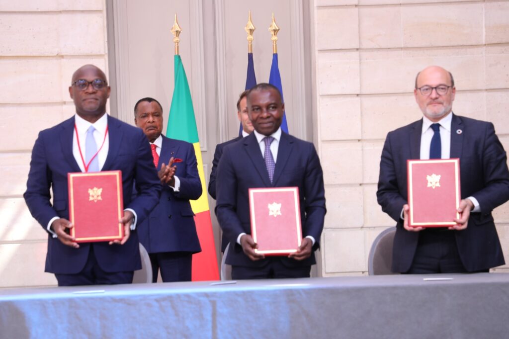 Cette rencontre de haut niveau a débouché sur la signature de plusieurs accords entre la France et le Congo. Il s’agit entre, autres, de Deux conventions de financement correspondant à deux tranches du programme d’appui à la gestion des aires protégées au Congo, dans le cadre de l’initiative Country Package for Nature, Climate and Forests ; de l’accord de partenariat énergétique pour la modernisation du réseau public de distribution d’électricité au Congo, en partenariat avec le ministère de l’Énergie, la société publique d’électricité et la société Seureca (filiale de VEOLIA). Un autre accord de coopération a été signé entre le Port Autonome de Pointe-Noire (PAPN) et le Grand Port Fluvio-maritime de l’Axe Seine (HAROPA PORT). Il a été signé à l’occasion du dîner organisé par le MEDEF international et le CIAN à l’Automobile Club de Paris, indique le communiqué.