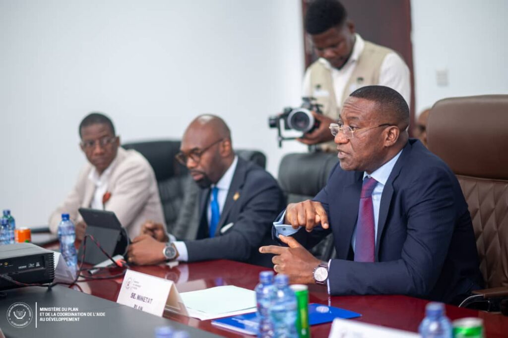 Le ministre d’État en charge du Plan et de la Coordination de l’Aide au Développement, Guylain Nyembo et son collègue en charge de l’Urbanisme et de l’Habitat, Alexis Gisaro se sont entretenus, le mardi 14 octobre. Cette séance de travail s’inscrit dans le cadre de la tournée de vulgarisation du Tableau Numérique de Suivi des Réformes du Climat des Affaires entamée par le ministre d’État en charge du Plan.